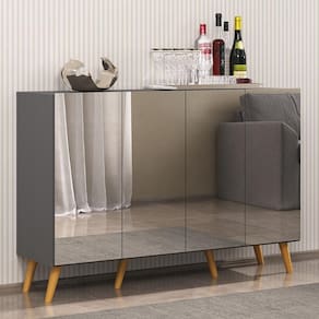 O Aparador Buffet 4 portas com Espelho e Pés Retrô Vegas Multimóveis é produzido em MDP, que garante maior durabilidade, facilidade na limpeza, além de um acabamento superior. Com 4 portas, possui acabamento acetinado (cerca de 20% de brilho) e um excelente espaço interno para organizar seus pertences (as prateleiras internas suportam 5 Kg cada e o tampo 10 Kg). Os pés retrô, em polipropileno, e os detalhes com espelhos nas portas dão um charme especial ao móvel deixando-o com um visual leve e permitindo você compor um ambiente com ar vintage e moderno ao mesmo tempo. Os espelhos são de vidro (o que evita que a imagem fique distorcida) e lapidados, ou seja, passam por um processo para que as bordas não fiquem cortantes, o que garante maior segurança. Seu design minimalista, torna o móvel muito versátil, podendo ser utilizado de diversas maneiras e em qualquer ambiente.