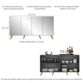 Conteúdo da Embalagem: 1 (um) aparador 1 (um) kit com 6 pés retrô 1 (um) kit com 4 espelhos