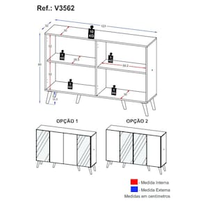 Dimensões do produto montado: Altura: 85cm | Largura: 123cm | Profundidade: 32cm *Você pode consultar as medidas internas na imagem técnica do produto.