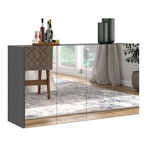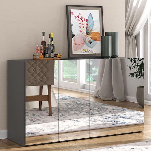 O Aparador Buffet 4 Portas com Espelho Vegas Multimóveis é produzido em MDP, que garante maior durabilidade, facilidade na limpeza, além de um acabamento superior. Com 4 portas, possui acabamento acetinado (cerca de 20% de brilho) e um excelente espaço interno para organizar seus pertences (as prateleiras internas suportam 5 Kg cada e o tampo 10 Kg). Os detalhes com espelhos nas portas deixam o móvel mais requintado, criando um ambiente moderno e charmoso. Os espelhos são de vidro (o que evita que a imagem fique distorcida) e lapidados, ou seja, passam por um processo para que as bordas não fiquem cortantes, o que garante maior segurança. Seu design minimalista, torna o móvel muito versátil, podendo ser utilizado de diversas maneiras e em qualquer ambiente.