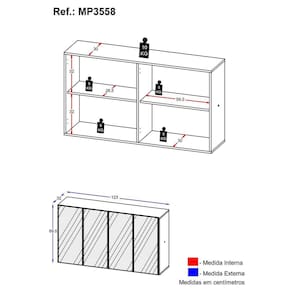 Dimensões do produto montado: Altura: 69,5cm | Largura: 123cm | Profundidade: 32cm *Você pode consultar as medidas internas na imagem técnica do produto.