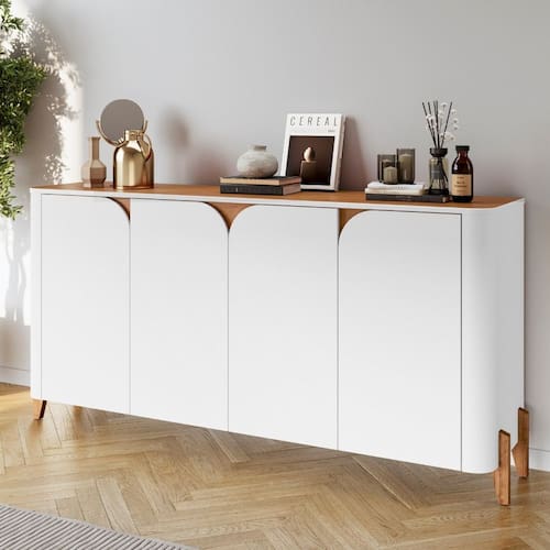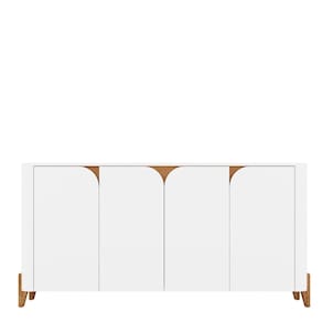 O Aparador Buffet 4 Portas com Pés de Madeira Memphis Casa D é a combinação perfeita entre funcionalidade e estilo para sua sala de jantar ou estar. Com estrutura em MDF e MDP, conta com 4 portas usinadas sem puxadores, 3 prateleiras internas e 6 nichos que oferecem amplo espaço para organização. Seu tampo resistente e sofisticado apoia itens decorativos e utensílios, enquanto os cantos arredondados e o acabamento em pintura UV agregam elegância ao ambiente. Possui dobradiças com sistema soft-close e pés em madeira maciça, garantindo durabilidade e charme. Suporta até 75kg.