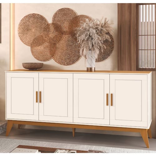 Aparador Buffet 4 Portas com Pés de Madeira Sierra EDN Móveis - Off White