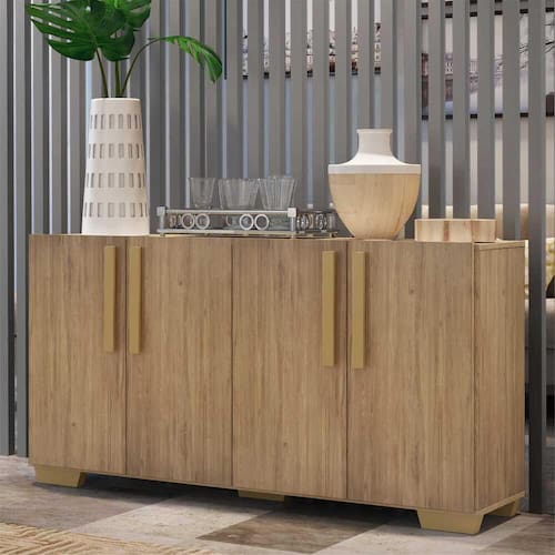 O Aparador Buffet 4 Portas com Pés Quadrados Viena Multimóveis é produzido em MDP com acabamento acetinado (cerca de 20% de brilho), que garante maior durabilidade, além de um acabamento superior. Com 4 portas e puxadores em madeira, possui um excelente espaço interno para organizar seus pertences (as prateleiras internas suportam 5 Kg cada e o tampo 10 Kg). Os pés quadrados, em polipropileno, facilitam na hora da limpeza. Seu design minimalista, torna o móvel muito versátil, podendo ser utilizado de diversas maneiras e em qualquer ambiente.