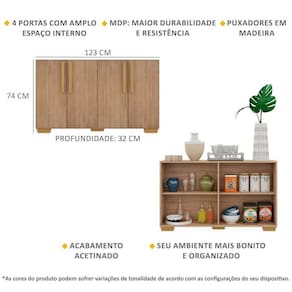 Dimensões do produto montado: Altura: 74cm | Largura: 123cm | Profundidade: 32cm *Você pode consultar as medidas internas na imagem técnica do produto.