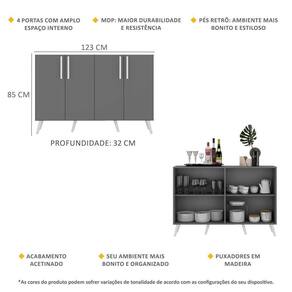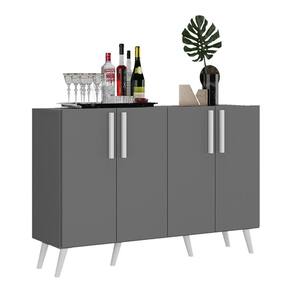 Aparador Buffet 4 Portas com Pés Retrô Viena Multimóveis Grafite/Branco - Cinza