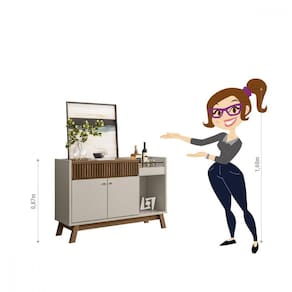 Características: Estrutura MDF e MDP Porta de abrir Bar espelho haste metálica Pés em estilo retro Gaveta com corrediça telescópica