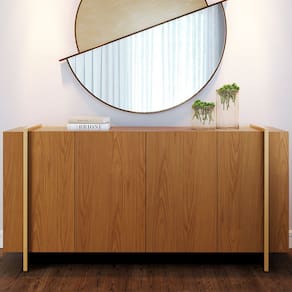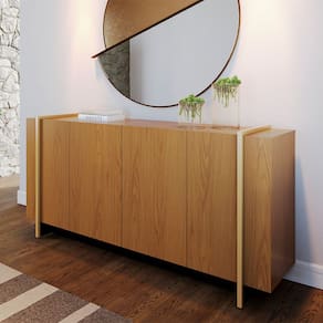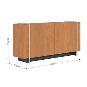 Deslumbre-se com o Buffet Aparador Oliwia de 160 cm, uma peça que une elegância e funcionalidade em uma harmonia incomparável. Sua estrutura em MDP de alta qualidade, revestida com pintura UV na envolvente cor Freijó/ Dourado, oferece durabilidade e estilo para qualquer ambiente. Com quatro portas equipadas com dobradiças metálicas, este buffet proporciona acesso fácil e conveniente ao amplo espaço interno, perfeito para armazenar seus utensílios com organização e praticidade. As prateleiras internas garantem uma distribuição eficiente do espaço, enquanto o detalhe em tubos metálicos preto fosco adiciona um toque moderno e sofisticado. O tampo espaçoso oferece uma área de apoio generosa para exibir decorações, servir alimentos ou preparar bebidas, tornando-o uma escolha versátil para qualquer ocasião. Com capacidade para suportar até 50 kg distribuídos, este aparador é ideal para uso diário ou para receber convidados com estilo. Seja na sala de jantar, na sala de estar ou em qualquer outro ambiente, o Buffet Aparador Oliwia é a opção perfeita para quem busca qualidade, elegância e praticidade em um móvel único e encantador. Garanta o seu!