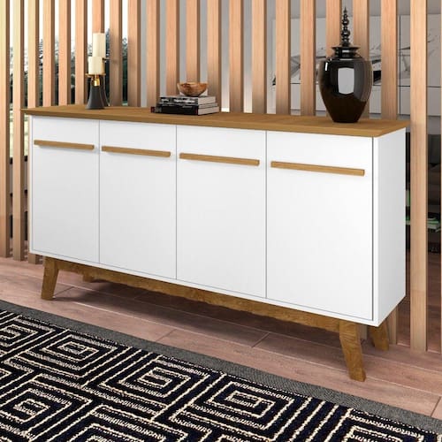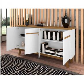 O Aparador Buffet Opala é o que você procura para completar sua sala! Com designer retrô ele irá agregar muito mais charme e requinte ao seu ambiente. Ele possui tampo de MDF 25mm chanfrado em ângulo proporcionando ainda mais charme e requinte ao móvel! Possui quatro portas com dobradiças metálicas, e amplo nicho interno. Duas prateleiras, sendo uma delas a altura ajustável ou até mesmo removível. Amplo tampo para acomodar bebidas, objetos de decoração, taças etc. Estrutura elaborado em MDP e seus pés são feitos de madeira maciça garantindo com isso ainda mais qualidade e resistência ao produto. Com tantas qualidades o Aparador Buffet Opala é perfeito para sua sala!