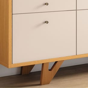 - Pés de madeira maciça com design exclusivo e acabamento envernizado;
