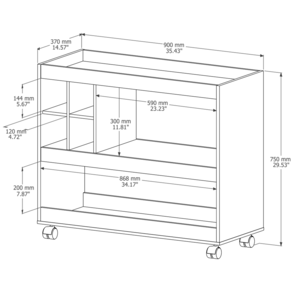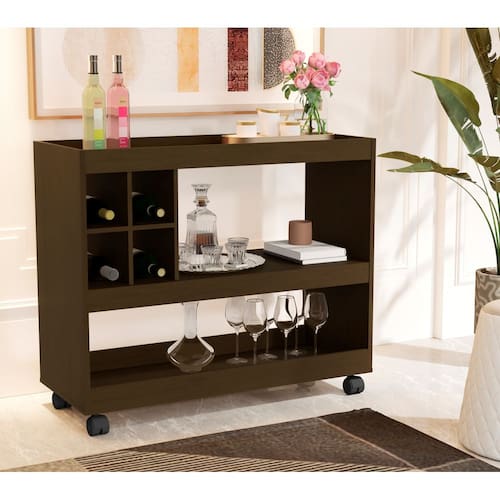 Características: -Espaço para garrafas e copos diversos; - Adega; - Rodízios.