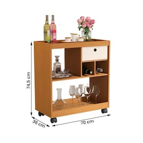 Compacto e funcional, possui gaveta com corrediça passante, prateleira para taças e espaço para bebidas e acessórios.
