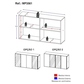 Dimensões do produto montado: Altura: 69,5cm | Largura: 123cm | Profundidade: 32cm *Você pode consultar as medidas internas na imagem técnica do produto.