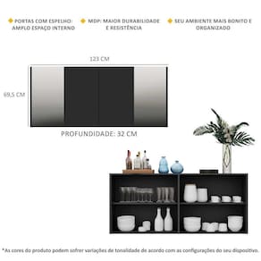Dimensões do produto montado: Altura: 69,5cm | Largura: 123cm | Profundidade: 32cm *Você pode consultar as medidas internas na imagem técnica do produto.