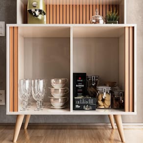 Aparador Buffet Cantinho do Café Dolce Com Efeito Ripado Movelove - Off White Perolizado/Freijó Ripado