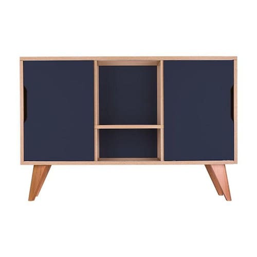 Buffet / Aparador / Balcão Modelo Murano cor Carvalho Treviso com 2 portas Azul Marinho, o móvel perfeito para deixar seu ambiente com estilo e organizado. Possui dois compartimentos internos com 2 portas laterais e uma prateleira central visível para colocar objetos de decoração. Móvel apoiado em quatro lindos pés torneados em madeira maciça. O móvel apresenta um estilo clean sem puxadores, apenas um recorte nas portas para abrir e fechar. Montagem: Vai desmontado. Cor do Móvel: Madeira Clara (Carvalho Treviso) e portas Azul Marinho. Cor dos pés: Amadeirado de cor clara. Medidas: Largura Total 115cm x Altura Total 77cm x Profundidade Total 40cm, portas A 53cm x L 37cm, pés A 20cm. Material: MDP com espessura 1,5cm . Limpeza: Recomenda-se a limpeza com pano seco ou levemente umedecido. Importante: Este anúncio inclui somente o produto conforme descrição acima. Todos os elementos de decoração das fotos não acompanham o mesmo. Ean: 7897116777222