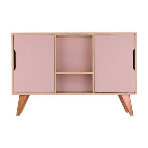 Buffet / Aparador / Balcão Modelo Murano cor Carvalho Treviso com 2 portas Rosa Claro, o móvel perfeito para deixar seu ambiente com estilo e organizado. Possui dois compartimentos internos com 2 portas laterais e uma prateleira central visível para colocar objetos de decoração. Móvel apoiado em quatro lindos pés torneados em madeira maciça. O móvel apresenta um estilo clean sem puxadores, apenas um recorte nas portas para abrir e fechar. Montagem: Vai desmontado. Cor do Móvel: Madeira Clara (Carvalho Treviso) e portas Rosa Claro. Cor dos pés: Amadeirado de cor clara. Medidas: Largura Total 115cm x Altura Total 77cm x Profundidade Total 40cm, portas A 53cm x L 37cm, pés A 20cm. Material: MDP com espessura 1,5cm Limpeza: Recomenda-se a limpeza com pano seco ou levemente umedecido. Importante: Este anúncio inclui somente o produto conforme descrição acima. Todos os elementos de decoração das fotos não acompanham o mesmo. Ean: 7897116777680