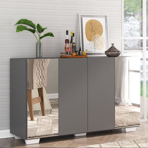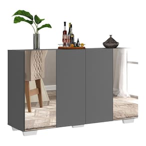 Aparador Buffet com Espelho e Pés Quadrados Vegas Multimóveis Grafite/Branco - Cinza