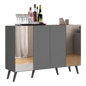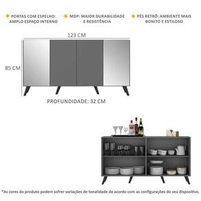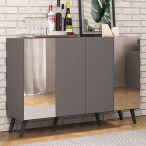 Aparador Buffet com Espelho e Pés Retrô Vegas Multimóveis Grafite/Preto - Cinza