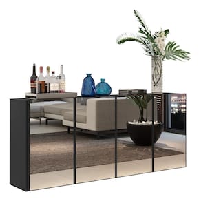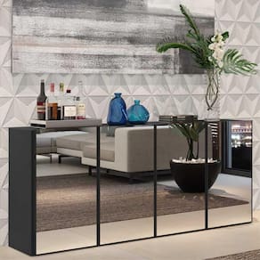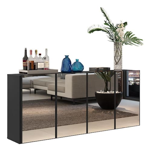 O Aparador Buffet 4 Portas com Espelho Vegas Multimóveis é produzido em MDP, que garante maior durabilidade, facilidade na limpeza, além de um acabamento superior. Com 4 portas, possui acabamento acetinado (cerca de 20% de brilho) e um excelente espaço interno para organizar seus pertences (as prateleiras internas suportam 5 Kg cada e o tampo 10 Kg). Os detalhes com espelhos nas portas deixam o móvel mais requintado, criando um ambiente moderno e charmoso. Os espelhos são de vidro (o que evita que a imagem fique distorcida) e lapidados, ou seja, passam por um processo para que as bordas não fiquem cortantes, o que garante maior segurança. Seu design minimalista, torna o móvel muito versátil, podendo ser utilizado de diversas maneiras e em qualquer ambiente.