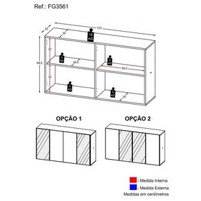 Dimensões do produto montado: Altura: 69,5cm | Largura: 123cm | Profundidade: 32cm *Você pode consultar as medidas internas na imagem técnica do produto.