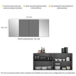 Dimensões do produto montado: Altura: 69,5cm | Largura: 123cm | Profundidade: 32cm *Você pode consultar as medidas internas na imagem técnica do produto.