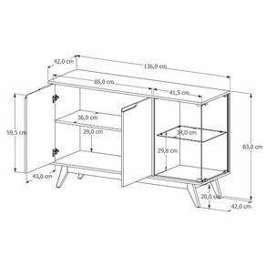 Aparador Buffet com Vidro 3 Portas e Pes Em MDF JB Moveis, Seu design elegante conta com tres portas, sendo uma delas com detalhe em vidro temperado de 4mm, que adiciona sofisticacao ao visual. As dobradicas metalicas proporcionam durabilidade e bom desempenho no uso diario, enquanto os puxadores metalicos complementam o conjunto com estilo. Os pes em madeira macica oferecem firmeza e um toque natural ao design.