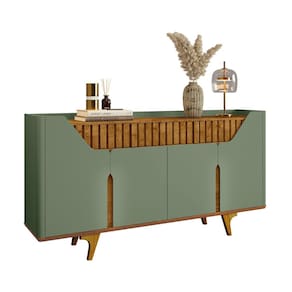 Madeira maciça | MDF | MDPO Aparador Danúbio é o móvel que sua casa precisa! Ele possui design moderno que mescla suas curvas nas portas e laterais com detalhe em ripado real. Ele conta com Base em MDF de 25mm chanfrada em ângulo, portas em MDF chanfrada com design único que proporciona ao produto beleza charme e requinte como nenhum outro entrega! Cantos curvos feitos em MDF, amplo tampo e prateleira ajustável. Gavetas com corrediças telescópicas, sendo as frentes em ripado real. Pés em madeira maciça que garantem ainda mais resistência e qualidade ao produto.