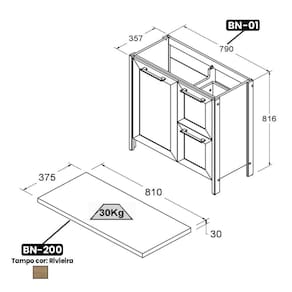 - Possui 2 gavetas com corrediças metálicas que suportam até 5 kg cada.