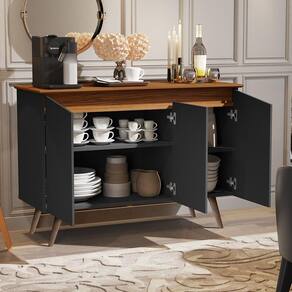 Que tal um móvel que vá deixar seu cantinho mais elegante e sofisticado o Aparador Buffet Encanto 3 portas. Foi desenvolvida pensando para ter praticidade com 3 portas com dobradiças metálicas, amplo espaço e uma prateleira interna. Possui tampo para acomodar, bebidas, taças ou decorações fabricadas em MDP de 15 mm e tampo em MDF de 15 mm, com pés em madeira maciça (20 cm) no Estilo Retrô, dando charme e durabilidade ao produto. Além disso o design com curvas torna o móvel harmonioso e deixa o cômodo mega maravilhoso.