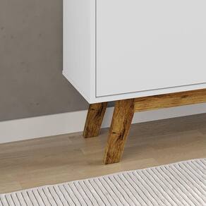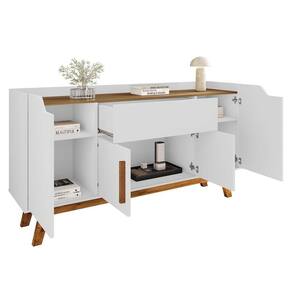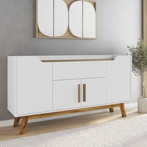 Aparador Buffet Future Branco Com Cinamomo - Bechara Com design moderno e funcional, o Aparador Buffet Future é a peça ideal para quem busca praticidade aliada à elegância. Seu visual clean combina corpo liso com pés em madeira, criando um contraste sofisticado que valoriza qualquer ambiente seja sala de jantar, sala de estar ou área parte superior, o tampo amplo é perfeito para apoiar itens decorativos, vasos, bandejas, aparelhos de jantar ou o que fizer parte da sua rotina. Na área inferior, o modelo oferece quatro portas bem distribuídas e uma gaveta discreta, garantindo excelente capacidade de armazenamento para utensílios, louças, toalhas, jogos americanos ou até design minimalista sem puxadores externos reforça o estilo contemporâneo, enquanto o detalhe usinado na borda superior das portas confere um toque de personalidade única. É uma peça leve visualmente, versátil e fácil de combinar em diferentes propostas de decoraçãões:Altura: 81,5 cmLargura: 136 cmProfundidade: 36 cmObservações:- Visual clean e elegante, sem puxadores aparentes- Pés em madeira, trazendo resistência e charme ao conjunto- Quatro portas e uma gaveta para excelente organização- Tampo espaçoso para decoração ou uso funcional- Ideal para salas de jantar, estar ou ambientes integrados