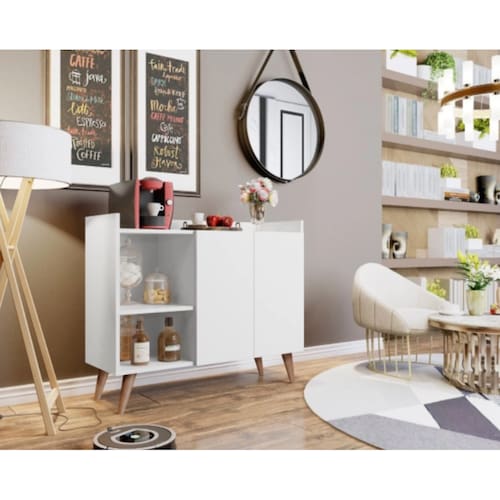 O Aparador Bartolomeu é ideal para sua sala! Com designer retrô ele irá agregar muito mais charme e requinte ao seu ambiente. Possui 2 Portas com dobradiças metálicas. O nicho formado entre as prateleiras faz com que você consiga organizar e deixar decorado do seu jeito.