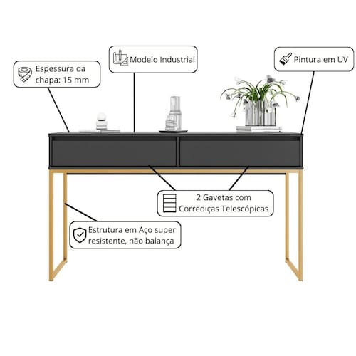 Aparador Buffet Iron Industrial Corredor Preto Dourado