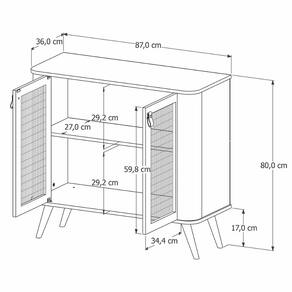 Com design retrô e acabamento sofisticado em MDF, ele traz portas com detalhe em ratam e pés em madeira maciça que valorizam qualquer ambiente.
