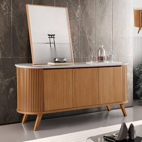Com design moderno, acabamento ripado nas laterais e tampo em tom sofisticado, ele traz charme ao ambiente.