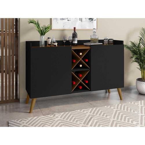 O aparador Buffet Max é versátil, charmoso e delicado, perfeito para expor seus objetos de decoração com elegância e sofisticação e compor ambientes como Hall de Entrada, Sala de Jantar, Sala de Estar. Contém tampo superior com formato estilo bandeja, portas nas extremidades, prateiras com excelente espaço interno e adega para 8 garrafas estilo X na parte central. Os pés com regulagem de altura no estilo retro completam o visual incrível deste móvel.
