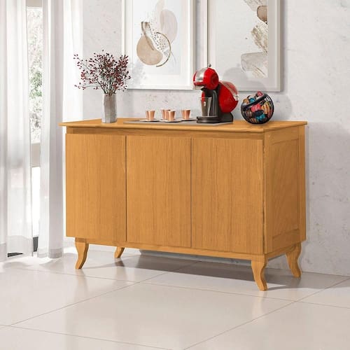 Fabricado em madeira de alta qualidade, o aparador garante durabilidade e estabilidade, proporcionando um toque acolhedor e natural à decoração. Seu design versátil combina facilmente com diferentes estilos de ambiente, tornando-se um complemento ideal para qualquer espaço.