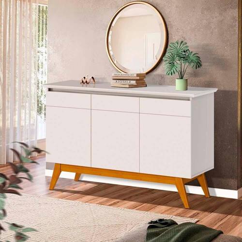 Ampla Capacidade de Armazenamento: Com 3 portas em MDF de 15mm adornadas com detalhes de friso, além de 2 prateleiras internas em MDP de 15mm, este móvel oferece uma generosa capacidade de armazenamento, tornando-o perfeito para organizar seus pertences.