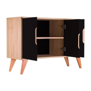 Cor do Móvel: Carvalho Treviso (Madeira Clara) com portas Preto.