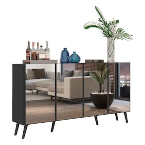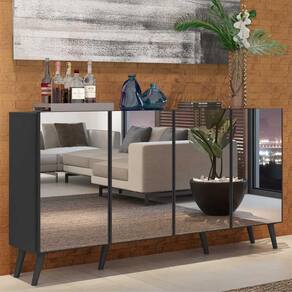 O Aparador Buffet 4 portas com Espelho e Pés Retrô Vegas Multimóveis é produzido em MDP, que garante maior durabilidade, facilidade na limpeza, além de um acabamento superior. Com 4 portas, possui acabam