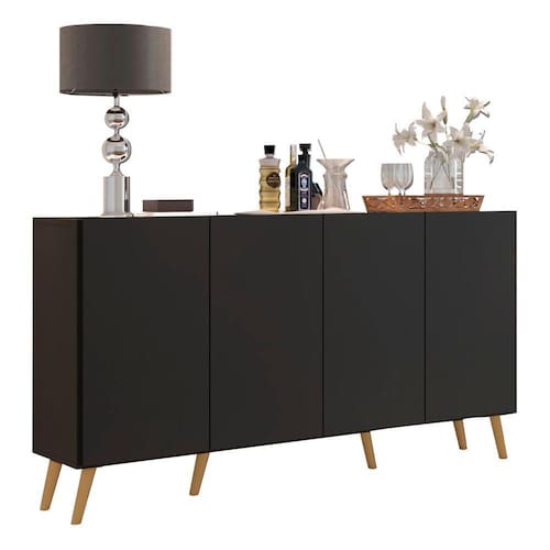 O Aparador Buffet 4 portas com Pés Retrô Veneza Multimóveis é produzido em MDP com acabamento acetinado (cerca de 20% de brilho), que garante maior durabilidade, facilidade na limpeza, além de um acabamento superior. Com 4 portas, possui um excelente espaço interno para organizar seus pertences (as prateleiras internas suportam 5 Kg cada e o tampo 10 Kg). Os pés retrô, em polipropileno, dão um charme especial ao móvel deixando-o com um visual leve e permitindo você compor um ambiente com ar vintage e moderno ao mesmo tempo. Seu design minimalista, torna o móvel muito versátil, podendo ser utilizado de diversas maneiras e em qualquer ambiente.
