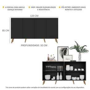 Dimensões do produto montado: Altura: 85cm | Largura: 123cm | Profundidade: 32cm *Você pode consultar as medidas internas na imagem técnica do produto.