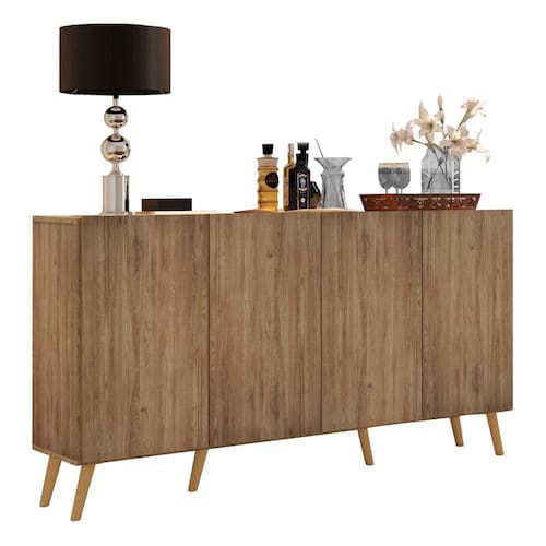 Aparador Buffet Retrô Multimóveis Veneza 4 Portas FG3556 Rustic/Natural - Marrom