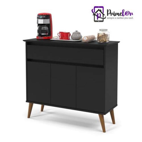 Aparador Buffet Retrô Pés Madeira 3 Portas E Gaveta Zeus