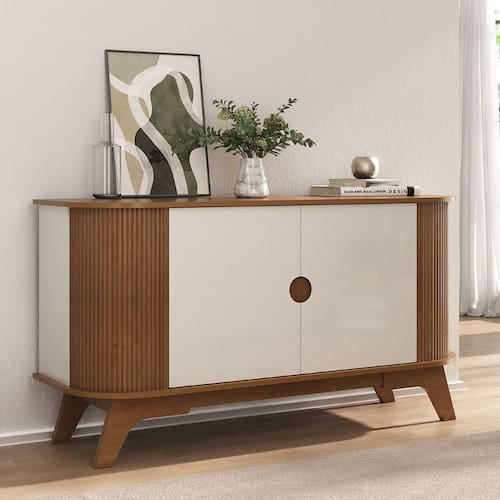 O Aparador Buffet Ripado 2 Portas Vivaldi Artely combina sofisticação e funcionalidade com design ripado arredondado, puxadores chanfrados e cantos suaves. Possui 2 portas com dobradiças metálicas, 1 prateleira interna e pés curvos em MDF de 25mm. Estrutura em MDF/MDP de 15mm com acabamento em pintura UV para mais durabilidade e estilo.
