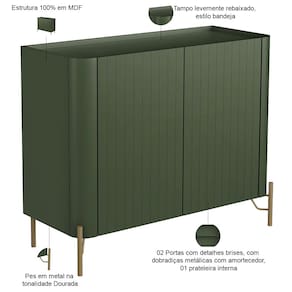 Fabricado em 100% MDF, esse buffet combina portas lisas e um design curvo - características do estilo orgânico - com pés metálicos industriais, criando um visual único e cheio de personalidade. Já com o tampo levemente rebaixado no estilo bandeja, esse aparador elegante oferece um espaço prático para exibir objetos decorativos ou servir drinks em encontros especiais. Além disso, o detalhe da porta Brise realça a beleza, ao passo que cria um efeito de textura ao balcão buffet. Por fim, seu amplo espaço interno garante organização sem comprometer a elegância, perfeito para guardar louças, toalhas ou itens de decoração.