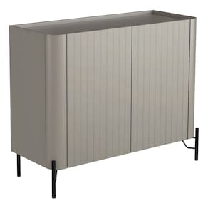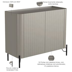 Fabricado em 100% MDF, esse buffet combina portas lisas e um design curvo - características do estilo orgânico - com pés metálicos industriais, criando um visual único e cheio de personalidade. Já com o tampo levemente rebaixado no estilo bandeja, esse aparador elegante oferece um espaço prático para exibir objetos decorativos ou servir drinks em encontros especiais. Além disso, o detalhe da porta Brise realça a beleza, ao passo que cria um efeito de textura ao balcão buffet. Por fim, seu amplo espaço interno garante organização sem comprometer a elegância, perfeito para guardar louças, toalhas ou itens de decoração.