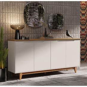 Aparador Flow 4 Portas Pés de Madeira O Aparador Flow 4 Portas Pés de Madeira se adapta facilmente a diversos ambientes, sendo um móvel versátil que traz vida para sua sala de estar, quarto ou até mesmo escritório. Sendo com pés em madeira, o que proporciona total resistência e qualidade do produto.