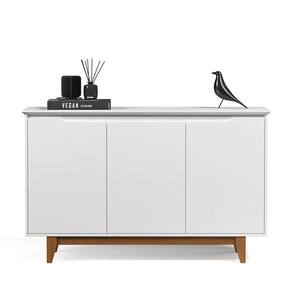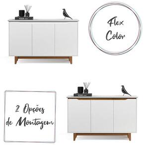 Aparador Buffet Sala Flow Com 3 portas Pés Madeira Maciça - Branco