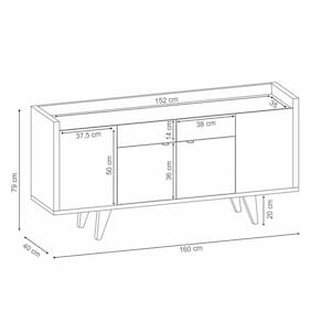 Material da estrutura: MDP e MDF 37 mm, 25 mm e 15 mm e pés de madeira maciça;